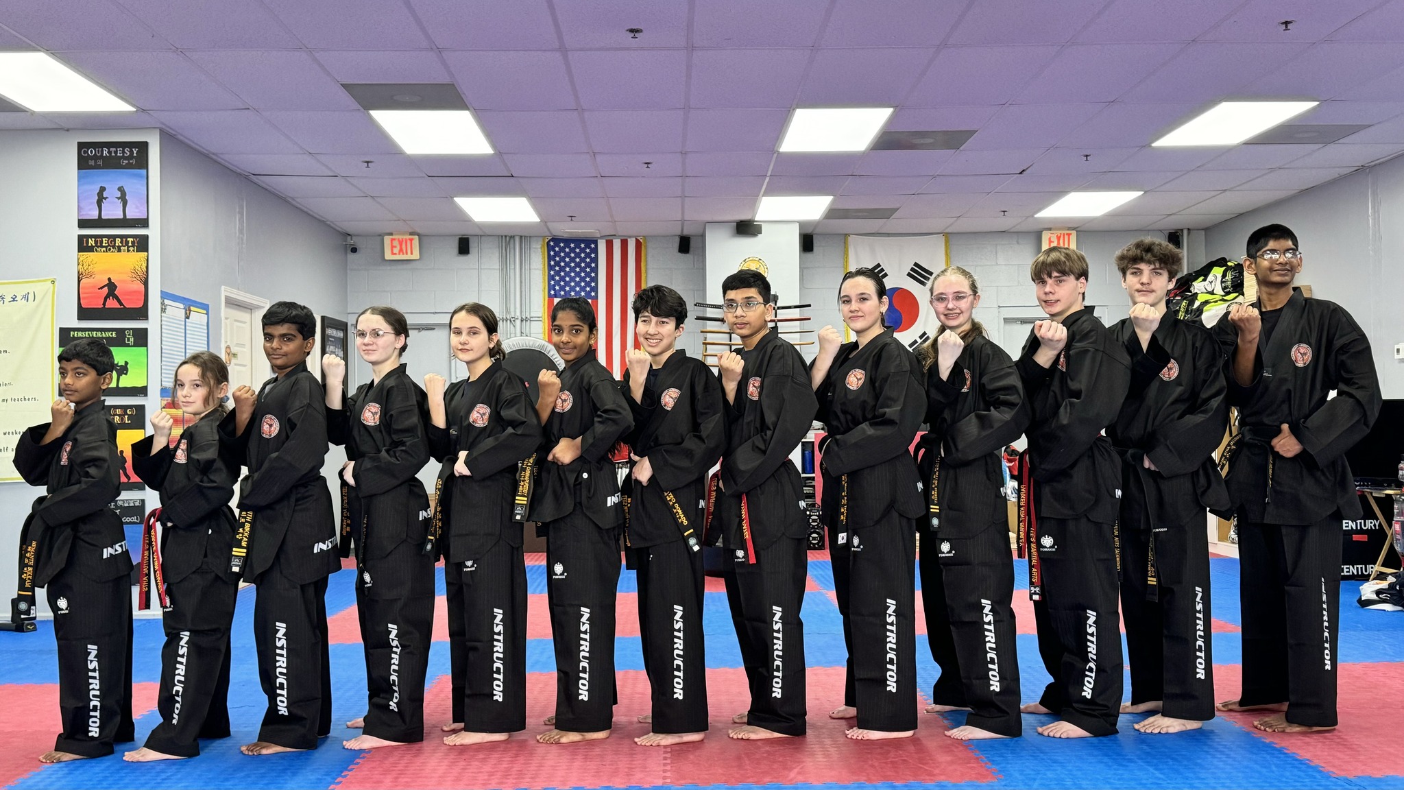 Foundation Taekwondo training for teenagers focusing on physical fitness and discipline development.